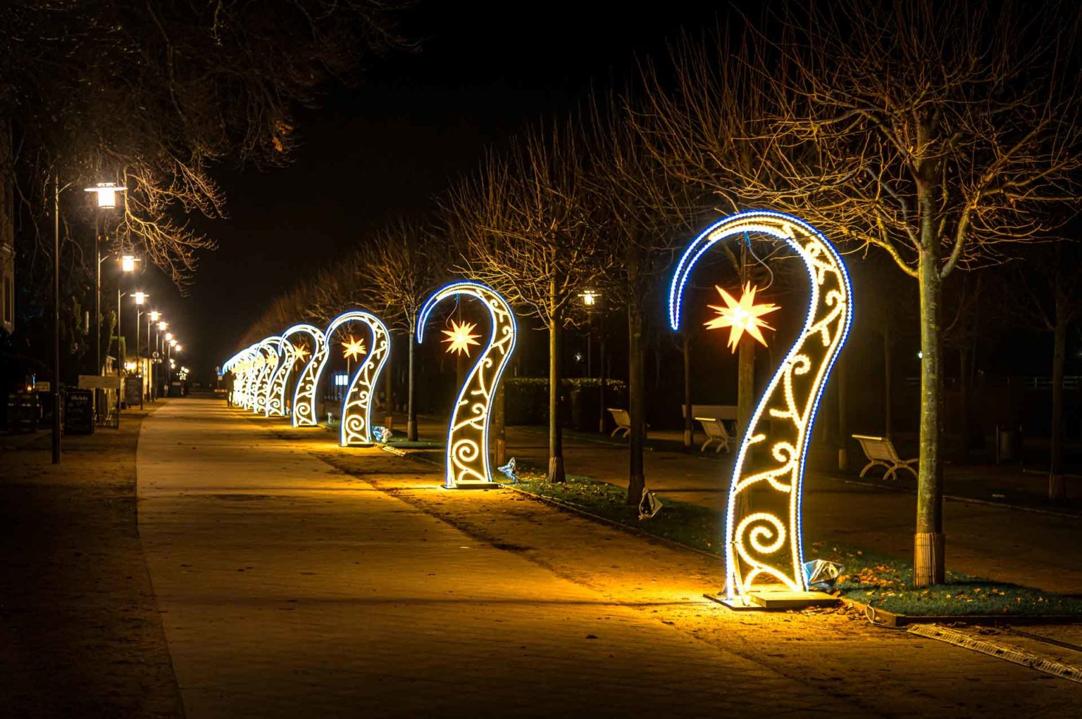 Wenn die Tage kürzer werden, beginnt auf Usedom eine der schönsten Zeiten des Jahres: Promenaden, Bädervillen, Kurplätze und Seebrücken verwandeln sich in ein Meer aus warmem Licht, funkelnden Figuren und goldenen Highlights. Entdecken Sie die winterliche Insel auf ganz neue Weise – magisch, stimmungsvoll und unvergesslich.